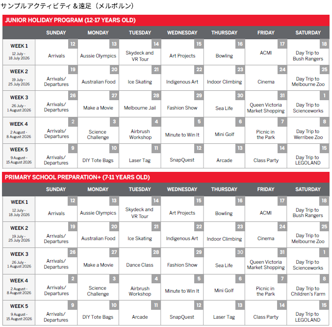 | コース名 | ジュニア・ホリデー・プログラム/ プライマリー・スクール・プレパレーション・プラス |