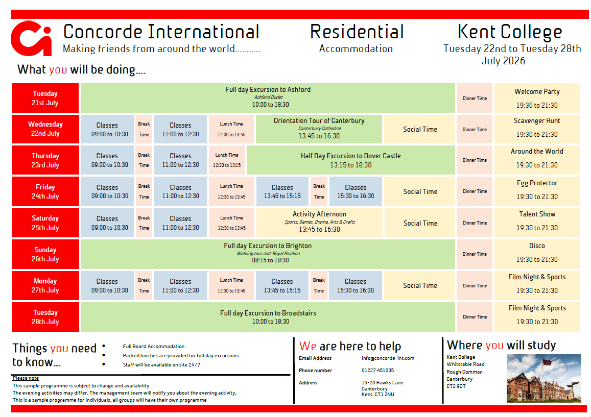 夏休み2026 コンコルド・インターナショナル(運営)/ケント・カレッジ