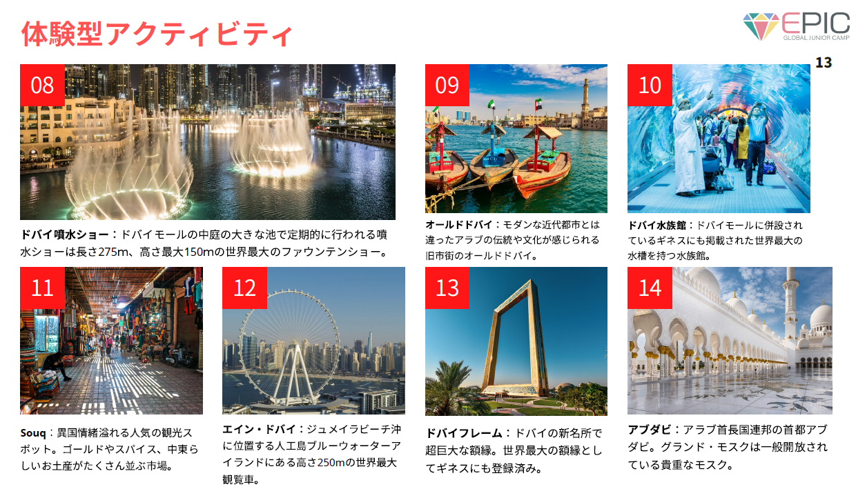 コース名 EPICイングリッシュ・キャンプ・ドバイ