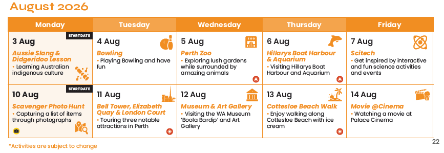 オーストラリアをメインに韓国や神戸にも校舎を展開する老舗語学学校です。長きにわたり、多くの中高生を受け入れています。初めての留学の方は多く、参加者からも大好評のアットホームな雰囲気が魅力のプログラムです。パースは、「世界で最も住んでみたい街」と称される街。キャンパスはパースシティ中心地にも近くアクセス便利なロケーションです。2023年にオープンしたばかりで、モダンでおしゃれな内装が特徴です。オフィスビル内にあり、学生用キッチンや広いラウンジ、図書館など快適な設備が整っています。さらに、バリスタトレーニングの学生が運営する校内カフェも魅力のひとつ。目の前には便利なカフェやカジュアルなレストランが並び、都市生活を満喫しながら学べる環境が整っています。英語レッスンは、学校全体でレベル分けテストを行い様々な年齢の留学生と共に受講できます。アクティビティは、全校生徒が一緒に行う場合と、ティーンの学生のみで行う場合で分かれます。アットホームな環境ですが、様々な年代の方と交流する機会がありますので国際交流に興味のある方におすすめです!