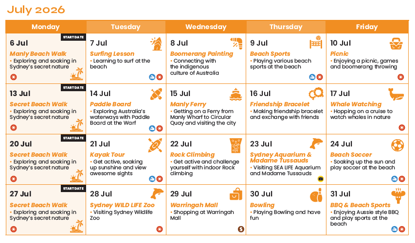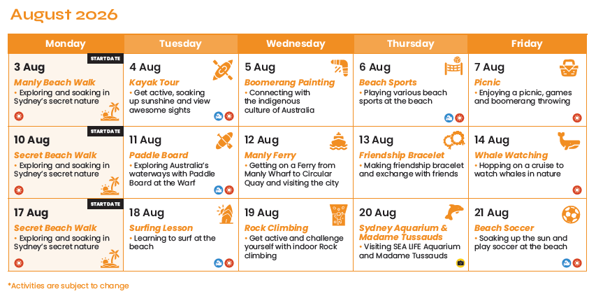 オーストラリアをメインに韓国や神戸にも校舎を展開する老舗語学学校です。長きにわたり、多くの中高生を受け入れています。初めての留学の方は多く、参加者からも大好評のアットホームな雰囲気が魅力のプログラムです。市街からフェリーでオペラハウスなどを眺めながら約15分。短時間で混雑するビジネス街と全く異なるビーチタウンのマンリーに到着。学校の目の前には、マンリービーチの広大な砂浜が広がります。マンリーはオーストラリアのサーフィンの発祥地で、現在も世界中のサーファーに愛されています。英語レッスンとアクティビティは、学校全体でレベル分けテストを行い様々な年齢の留学生と共に受講する場合とティーンだけで受講する場合に分かれます。アットホームな環境ですが、様々な年代の方と交流する機会がありますので、国際交流に興味のある方にもおすすめです!
