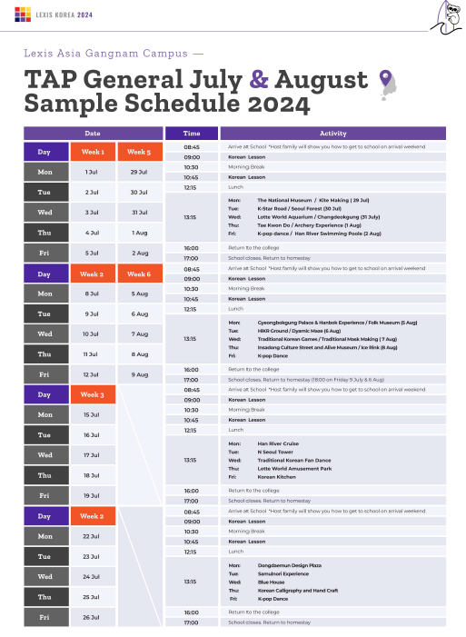 学校は、カンナム駅よりすぐという便利な場所に位置。午前は韓国語を学び、午後はソウル市内へ観光を中心としたアクティビティと、ソウル市内を満喫できる内容です。また、ホームステイ滞在先ではネイティブと韓国語で交流する機会もあり、韓国の文化を体験することができます!韓国までは飛行機で約1時間30分!日本語を話す先生もいて初心者の方でも安心!同じアジアで全く違う文化を持つ韓国・ソウルでの生活体験と韓国語を学べる人気プログラムです。(英語レッスン選択可能)