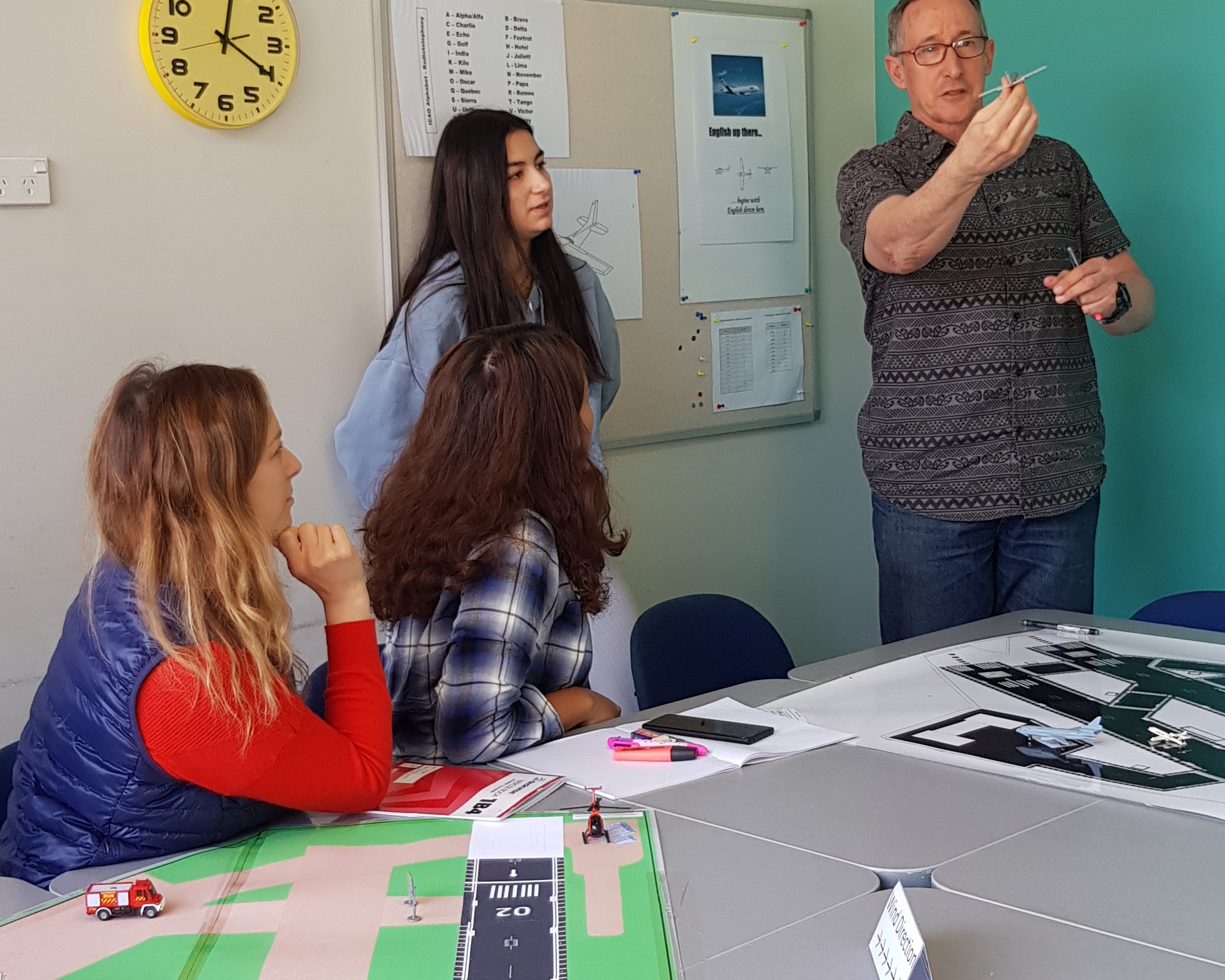 また、教材はFlightpath: Aviation English for Pilots and ATCOsと講師が作成した模型を使用します。