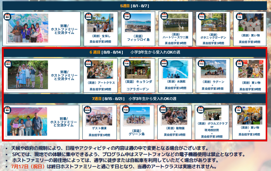 | ■ 2026年 9~12才(小学3年生~6年生)/ホームステイ | |||||||